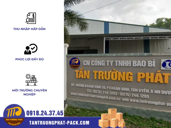 Nếu bạn đang tìm công ty bao bì tuyển dụng Bình Dương có thu nhập ổn định, môi trường chuyên nghiệp và cơ hội phát triển lâu dài, hãy liên hệ Tân Trường Phát ngay hôm nay qua hotline 0918 24 37 45 hoặc nộp hồ sơ trực tiếp tại KP. Bình Chánh Đông, phường Tân Hiệp, TP. Tân Uyên, Bình Dương.