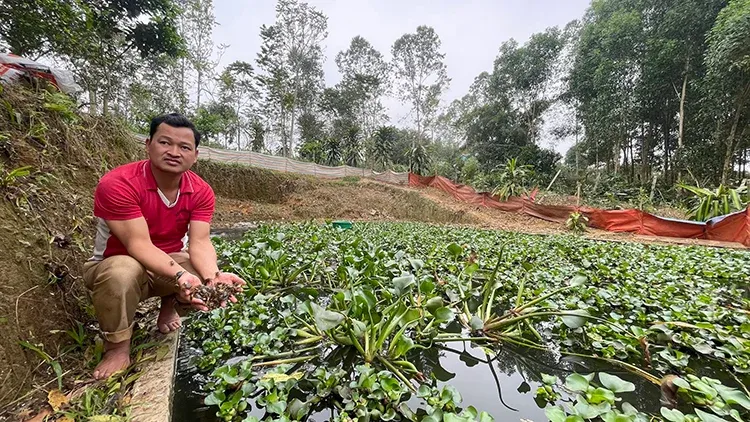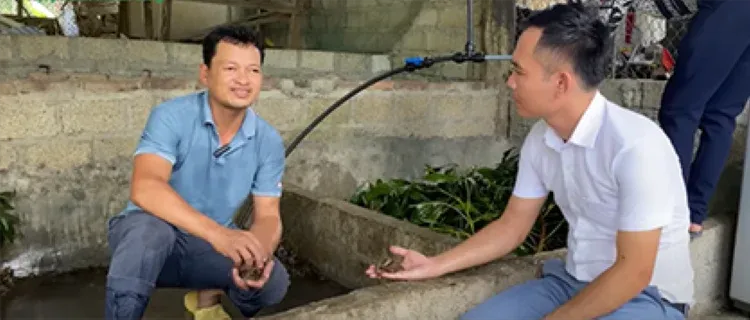 Đỗ Sỹ Linh (39 tuổi) trú tại tổ dân phố Ba Tráng, thị trấn Tân Yên, huyện Hàm Yên, tỉnh Tuyên Quang chia sẻ kỹ thuật nuôi cua đồng trong ao tích hợp bể xi măng.