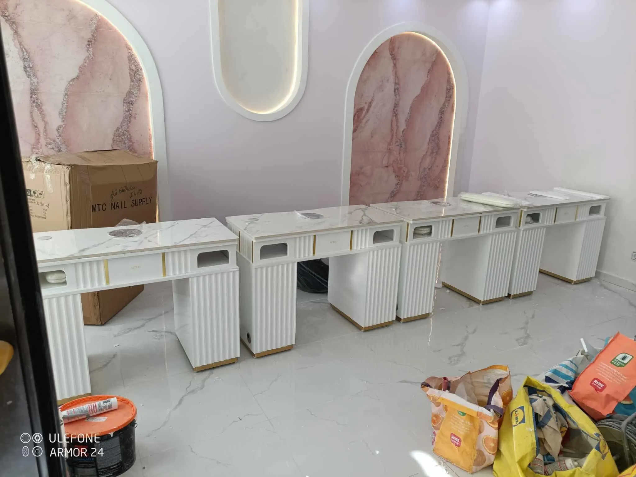 Nhiều chủ tiệm thường chọn cách tự mua đồ về sắp xếp để tiết kiệm chi phí ban đầu. Tuy nhiên, việc thiếu phối hợp giữa thợ điện nước và thợ nội thất thường dẫn đến các hệ lụy: vòi nước yếu, ổ cắm không đúng vị trí máy máy mài, hay nghiêm trọng hơn là không gian bị bí bách, kém sang.