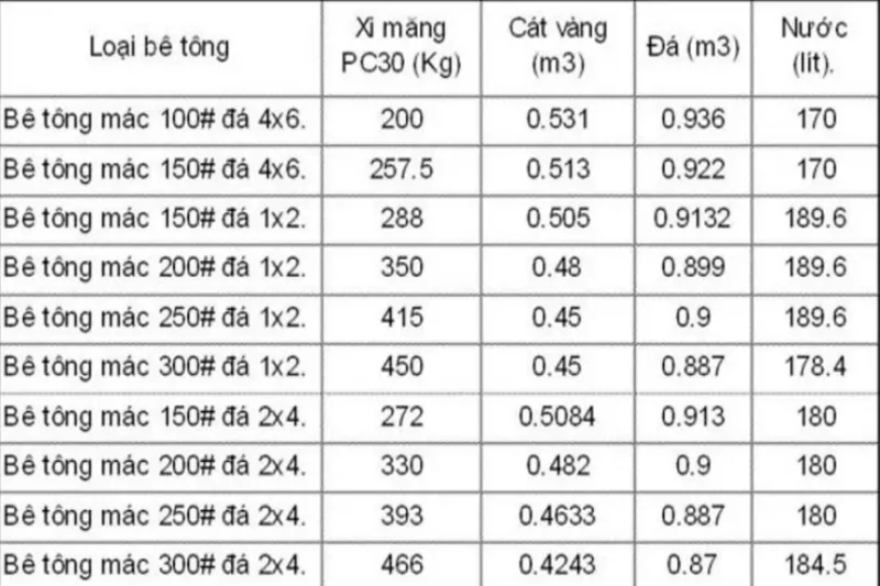 Định mức tỷ lệ trộn bê tông cho 1 bao xi măng 50kg