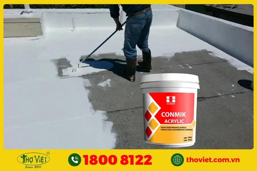 Màng chống thấm acrylic polymer dạng nhũ tương, thi công bằng cọ/lăn/phun. Khi khô tạo màng đàn hồi, co giãn theo chuyển động nền, chống thấm và phản xạ nhiệt.